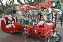 Des musiciens, chanteurs déambulent sur une Rosalie à pédales entièrement sonorisée et éclairée, nous sommes autonomes équipés d'un groupe électrogène pour la sono et les éclairages.