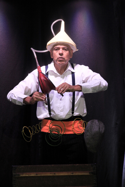 Gags visuels, interactivité avec le public, jeux de mots subtils sont ses marques de fabrique...Il a plusieurs créations de spectacles comiques à son actif...
