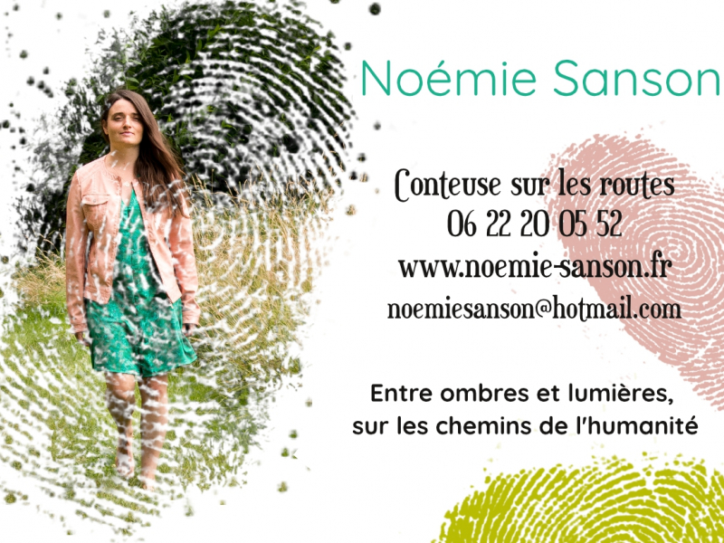 Noémie Sanson, conteuse profesionnelle, a suivi un parcours en tant qu'interprète et artiste au sein de différentes compagnie de spectacle vivant (Buchinger's Boot Marionettes, Divadlo Continuo en République Tchèque, Ubwingege...) avant de se plonger dans l'univers et l'imaginaire des contes et des histoires, d'ici et d'ailleurs, d'aujourd'hui et d'hier.
