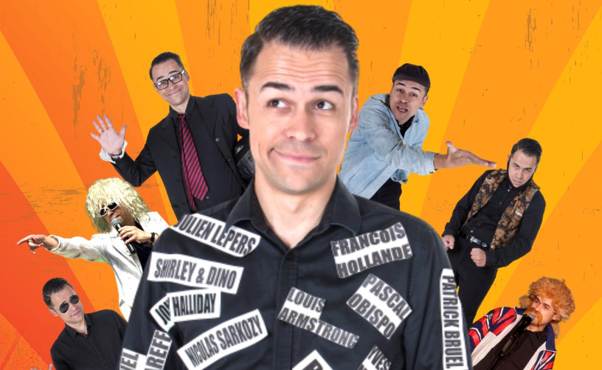 Son spectacle « Faces cachées », qui évolue au fil de l’actualité, nous emmène dans un tourbillon de sketchs et de chansons et nous fait découvrir de nombreux personnages parmi lesquels Michel Polnareff, Johnny Hallyday, Pascal Obispo, Stromaé , Christophe Maé, François Hollande , Jeff Tuche, Jamel Debouzze, Nicolas Sarkozy, Louis Armstrong, Julien Doré, Madame de Fontenay ou encore Régis Laspalès.