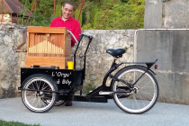 Animation centrée sur l'Orgu'à Bily, un orgue de barbarie en bois massif , monté sur un vélo-triporteur.