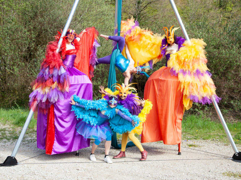 Échassiers, acrobates, danseuses sous bulles, maquilleuses, bulleuse de savon, artistes de cirque, performances feux déambulation lumineuses, c'est une équipe de 6 artistes polyvalents qui se tient à votre écoute pour enchanter chacun de vos évènements.