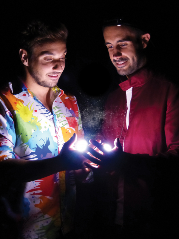 Ben est magicien, Léo jongleur, il est logique de retrouver ces deux disciplines dans les créations de Ben & Léo. Mêler magie et jonglerie sans tomber dans un enchaînement de numéros visuels n’était pas chose facile mais rapidement Ben & Léo ont trouvé la solution.