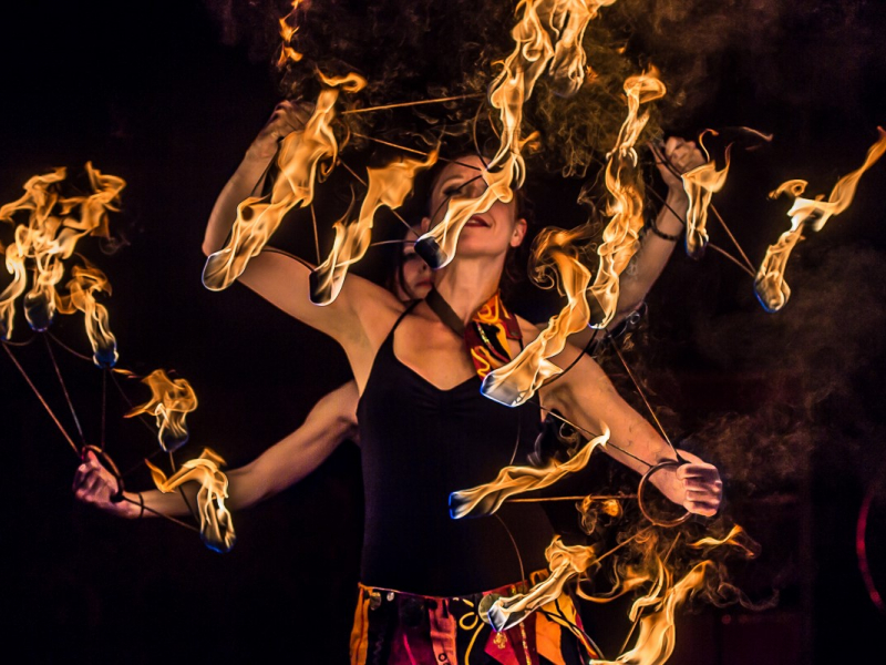 De plus, elle agrémente ses spectacles de feu d'effets pyrotechniques pour les rendre encore plus magiques et impressionnants.