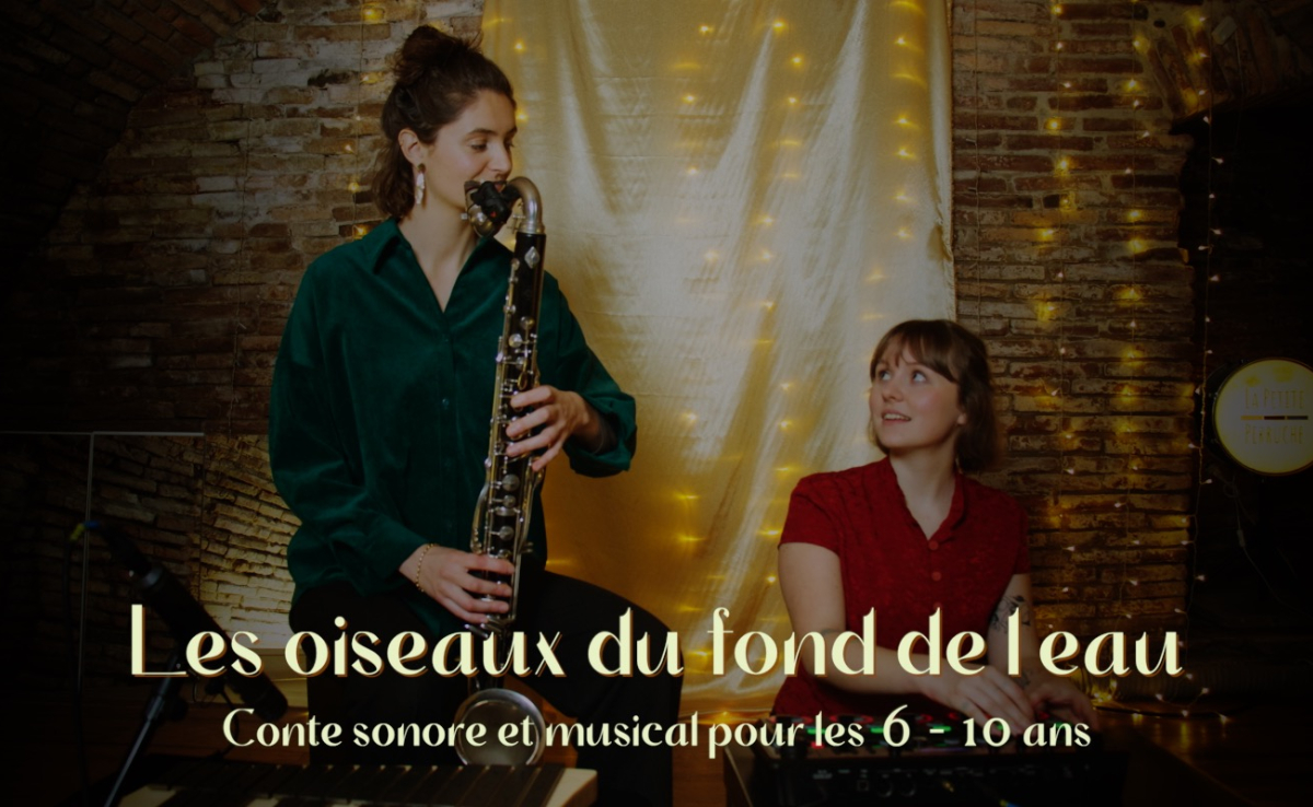 Louise Mazelier et Lucie Vigier présente leur toute première collaboration : "Les Oiseaux du fond de l'Eau". Une envie commune de se tourner vers le spectacle vivant jeune public et le désir d'explorer de nouvelles formes artistiques à travers l'accompagnement musical d'un texte existant ("La Conférence des Oiseaux" de Farid al-Din Attar) et l'habillage sonore de celui-ci.