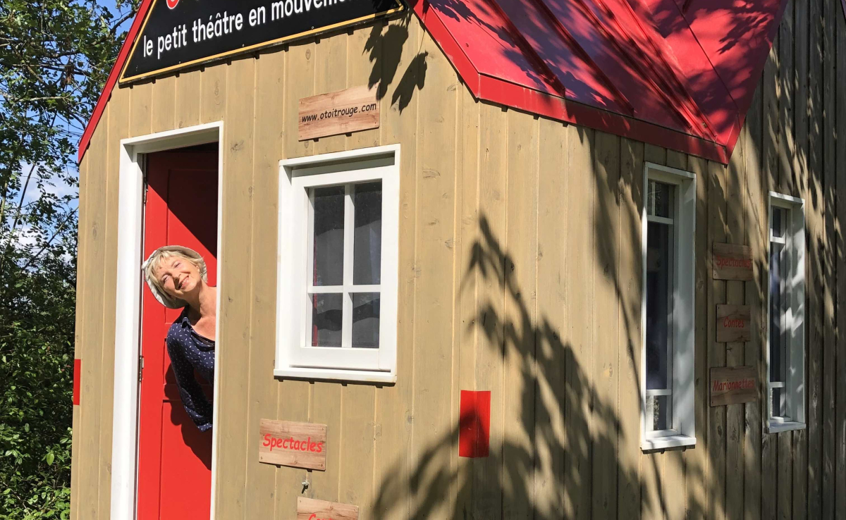 Ticia est conteuse marionnettiste dans une petite maison en bois sur roues aménagée en théâtre itinérant qu'elle a appelée"Ô Toit Rouge le petit théâtre en mouvement".