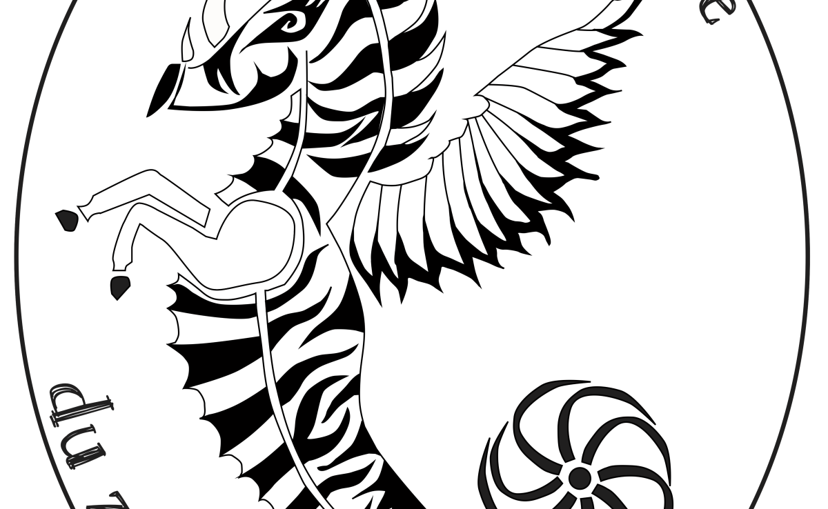Un zèbre à l’apparence d’hippocampe ailé, coiffé d’une crinière de feu, ornée de cornes de rhinocéros, terminé par une queue en forme de roue.
