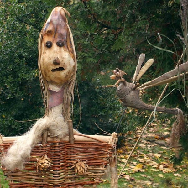 “Petites Histoires de la Forêt” a été conçu pour être présenté dans un espace naturel. Les décors et personnages sont composés d'éléments végétaux.