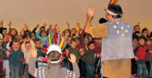 Et, surprise à la fin du spectacle les enfants seront déguisés en indienset danseront avec Wapi (qui veut dire heureux).