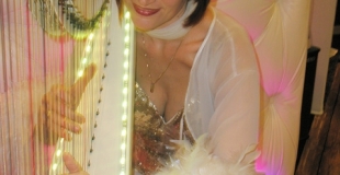 La diva à la harpe blanche accompagne en toute interactivité en direct le jongleur Jeremy James dans son grand numéro d'anneaux ... les constellations d' anneaux manipulés, ses mouvements chorégraphiques et dansants unis avec les sons cristallines et aériens de la harpe, deux artistes chacun dans son art mais en se complètent encore ... en duo!