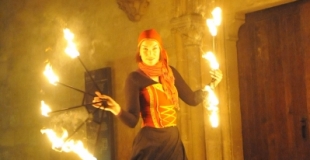 Un chorégraphie de jonglerie et de manipulation avec des torches enflammées.