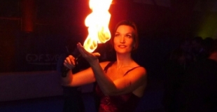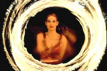 Une danse sensuelle ou le feu remplace le partenaire masculin, un jeu de séduction entre le corps et la lumière chaleureuse des flammes qui dansent autour d'elle de très, très près
