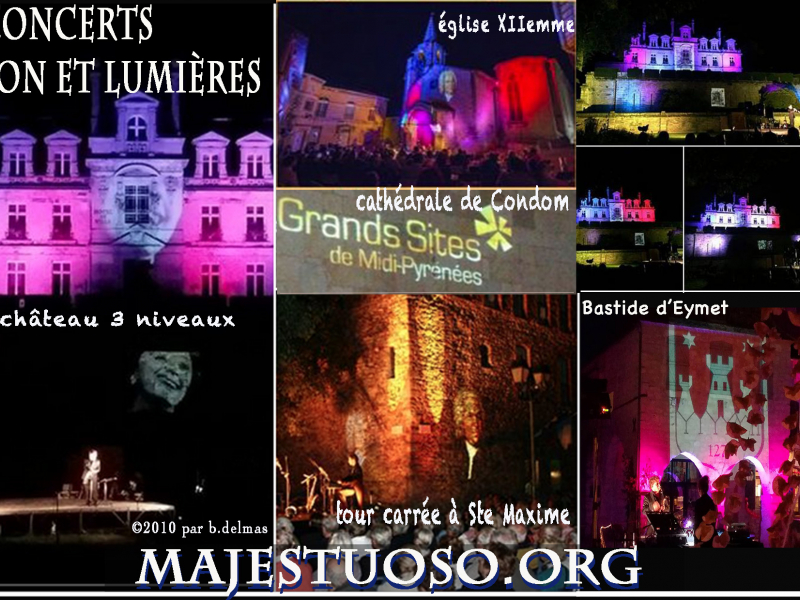 concert "chronologique" de votre lieu, musiques jouées selon l'histoire du lieu, images monumentales en adéquation et lumières sur les murs de vos bâtiments;