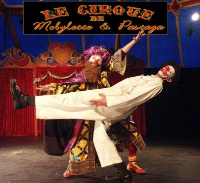 Spectacle de Clown : " Le Cirque ! de Mobylette et Pastaga " 2 clowns réinventent le Cirque ! Jonglerie avec assiettes, équilibre périlleux, numéro de fakir, dressage de lions-marionnettes, duel musical et claquettes ... 180 représentations, un spectacle d'une énergie débordante qui joue toujours avec les réactions du public. 1 heure - Tous publics à partir de 4 ans.