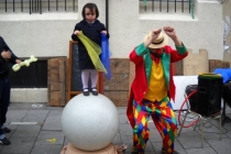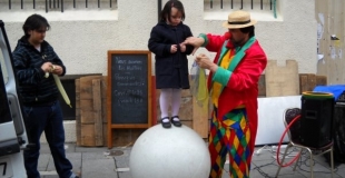 détours de piste est un espace cirque dans les rues de votre ville ou les passants sont invités à essayer les accessoires de cirque du clown clodio. des ballons et des bonbons sont distribués tout au long de l'animation.