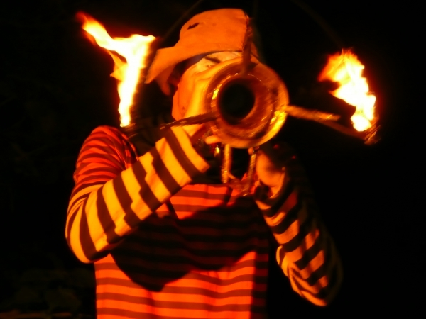 Spectacle pour échassier(s) manipulateur(s) de feu et musiciens déjantés