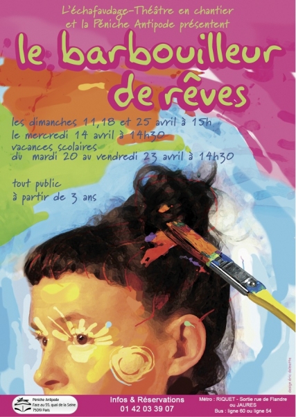 Une nuit un drôle de personnage, le barbouilleur de rêves, rend visite à Sami… Il aide l’enfant à poser des couleurs sur les images qui le hantent. Le décor, savamment conçu permet de peindre au fur et à mesure que l’histoire se déroule. Les enfants assistent fascinés à une sortie « d’art in progress ». N. Kupermann - Télérama - Mai 2009