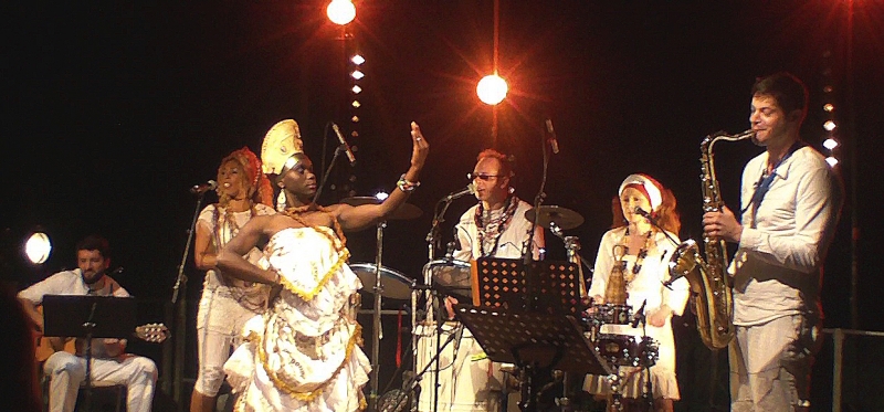 GANGA ZUMBA est un Quintet de musique brésilienne sur scène. Concert afro-brésilien avec 2 Percussionnistes, une Chanteuse, guitare et saxophone ! la culture World Music de Bahia sur scène.