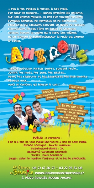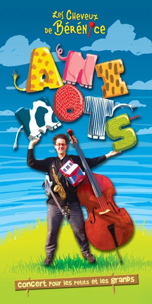 "ANIMOTS" est un concert, un tour de chants avec de nombreux instruments (guitare, ukulele, accordéon…) où la participation des enfants est sollicitée.