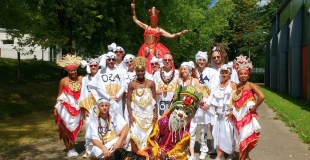 Percussions brésiliennes, Batucada professionnelle. Loin des clichés sur la musique brésilienne, entrez dans la magie des percussions brésiliennes de bahia, des rythmes du Carnaval afro-brésilien.... très nombreuses percussions, accompagnées de danseuses et danseurs de capoeira, et danseuses sur échasses ! ... de 7 à 25 artistes dans la rue pour un Carnaval brésilien dans la tradition de Bahia !!!