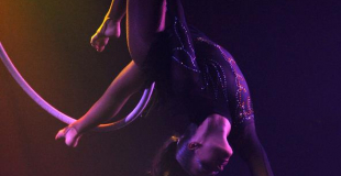 Numéro aérien dynamique alliant grâce et rythme. L'artiste tourbillonne au dessus de vos têtes retenue par une main ou un pied enchaînant les figures acrobatiques, grand écarts, souplesses et prouesses physiques tout au long du numéro.