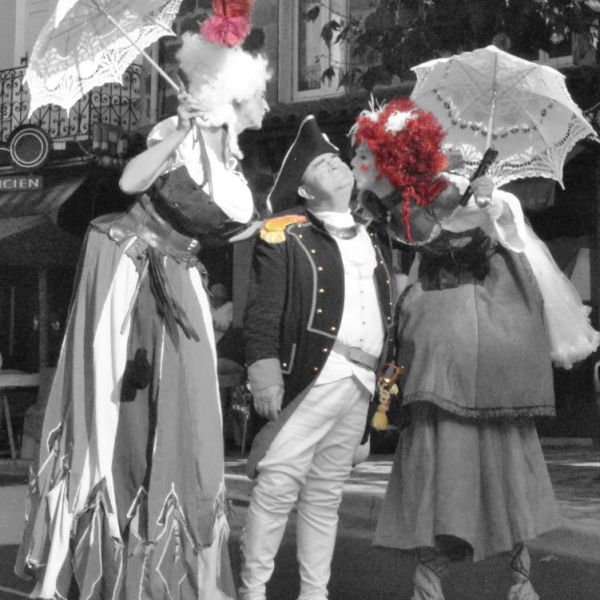 En animation de rue, en accueil public, carnaval, soirée à thème 18ème, fêtes renaissances...etc..