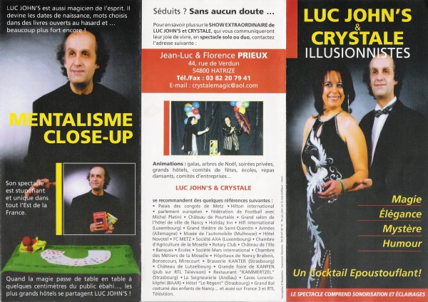 Luc John est magicien lorrain depuis plus de vingt ans, et, il parcourt les plus grandes salles, cabarets, dans le seul but de faire rire, beaucoup rire.