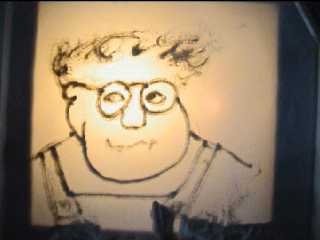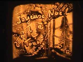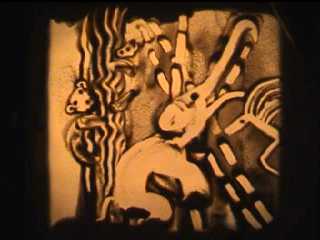Le dessin sur sable se fait sur une table lumineuse, une caméra placée au dessus de l’artiste filme l’évolution des dessins et l’ensemble est projeté sur grand écran.