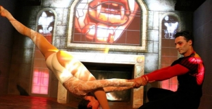 Portés acrobatiques La compagnie de cirque Lomalamal vous propose un numéro de portés acrobatiques, de main à main, haut en couleur: Duo Dandy.Duo acrobatique où les corps s'entremêlent, se suspendent, s'envolent,... Par Lomalamal
