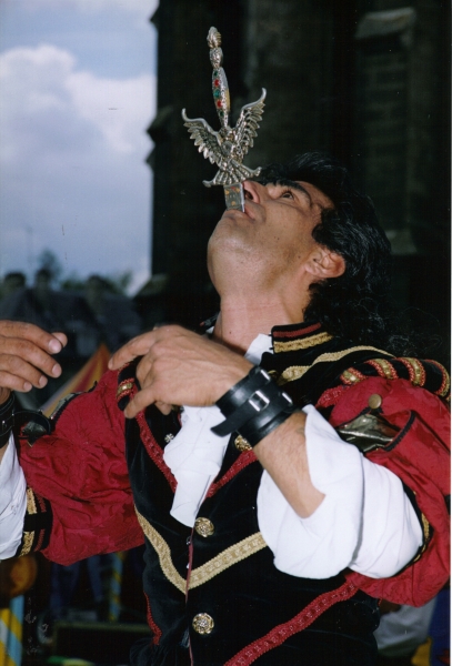 - magie comique avec participation des jeunes spectateurs,- sculpture sur ballons, - jonglerie avec des balles, massues,dagues, torches enflammées...,