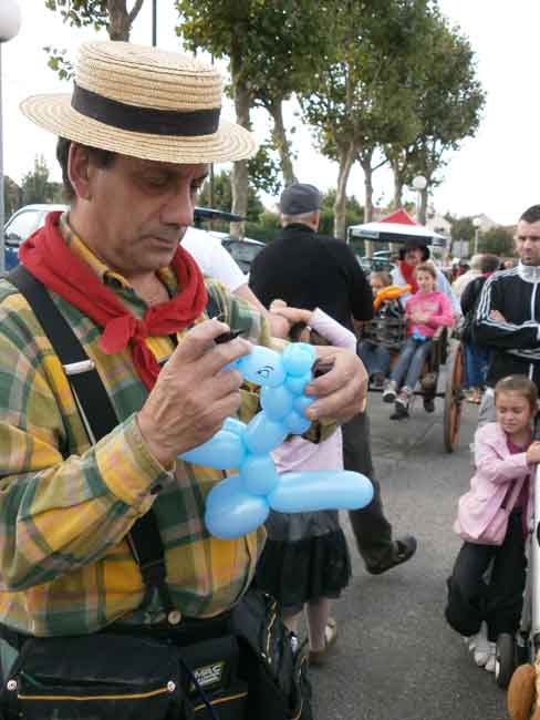 Je suis déguisé en clown ou en titi parisien et je me promène avec mes ballons tous au long de la prestation. Pour les adolescents je leur apprends à débuter dans la sculpture sur ballons.