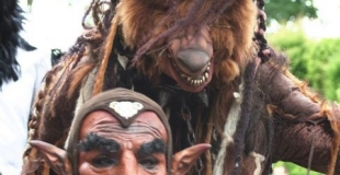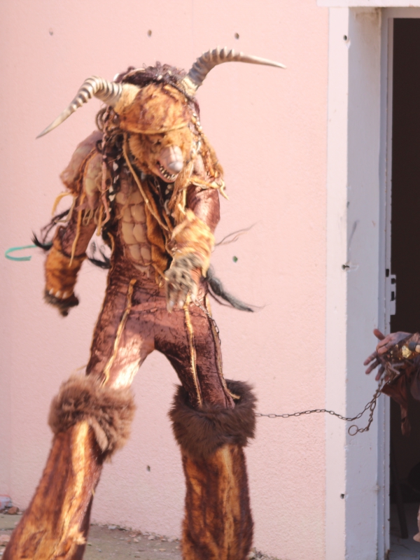 Déambulation interactive de la Bête et son dresseur ainsi que spectacle fixe, improvisations.2 heures en continu, 2 x 1 heure ou 3 X 40 minutes tout est possible avec le cortège de d'Altaïr et son Fougre.