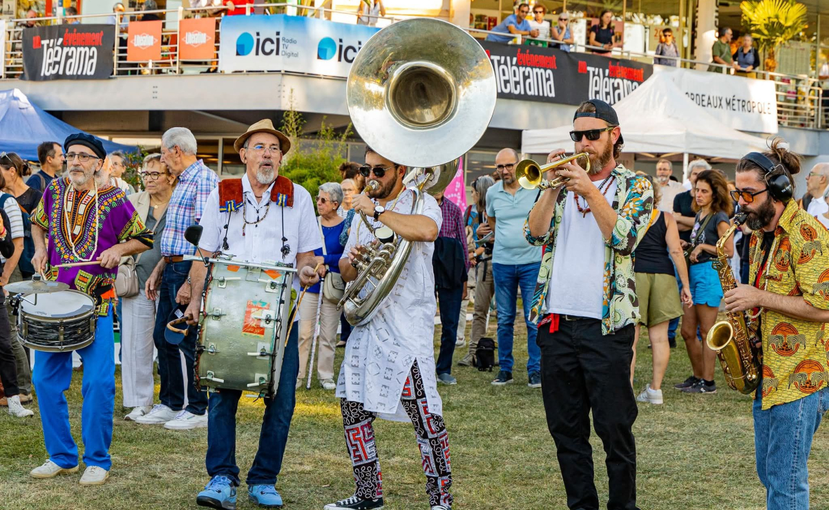 La Fanfare de l'Espace Un nouveau son venu d’ailleurs… Une rencontre mélodique entre percussions volubiles et brass band cosmique.Cuivres et percussions débridées, tubas drum’n’bass, marimba portable... Par Cie Poum tchaC