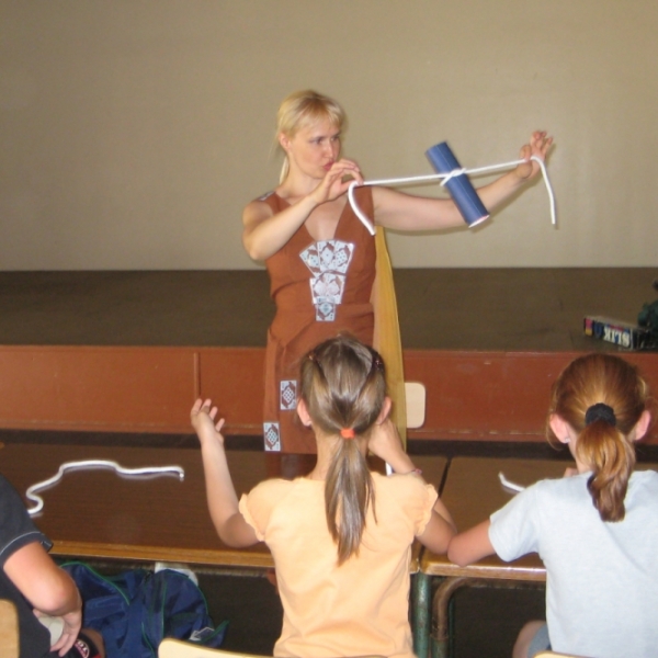 L'atelier de sculptures sur ballons se construit de la même façon : démonstration -> explication -> réalisation. À la fin de latelier les enfants savent faire des figures simples : une souris, un chien, un chapeau, une épée, une girafe, un lapin, un cygne