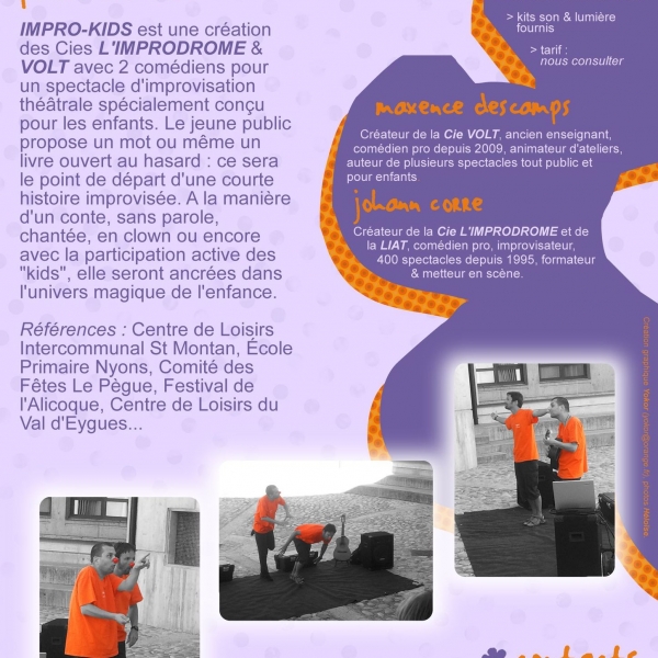 Maxence est prêt. Les enfants aussi. Mais il manque Johann qui n'a pas osé venir car il ne connaît pas son texte ! Pas de panique : c'est un spectacle d'improvisation théâtrale, donc il n'y a pas de texte à apprendre ! Johann est rassuré... Jusqu'à ce que Maxence lui annonce qu'ils devront créer les histoires en quelques secondes, à partir des mots que donneront les enfants... Et pour corser le tout, il va fixer un défi pour chaque histoire. Pas même le temps de réagir : le spectacle a commencé !