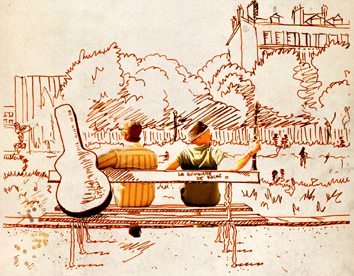 La Guinguette de poche est un spectacle musical interprété par 2 chanteurs musiciens.