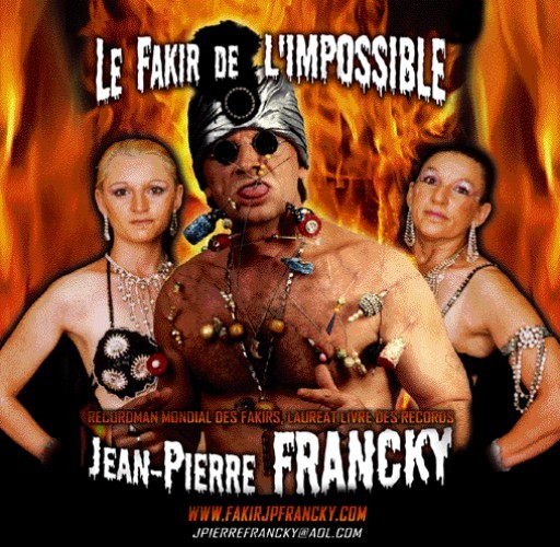 le fakir de l'impossible jean pierre francky et sa troupe se produisent en attraction ou en spectacle complet dans toutes manifestations en france comme dans le monde entier.