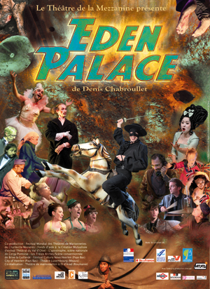Denis Chabroullet, metteur en scène avide de curiosités et d'expérimentations, vous propose d'investir son "Eden Palace" pour un voyage labyrinthique et festif : ici, point de rideau rouge, de loges ni même de scène, mais une énorme machine à jouer qui invite dans une même aventure, public, comédiens, chanteurs, techniciens, objets, dans une grande illusion poétique.