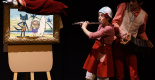 Ernest, une marionnette sensible et curieuse, qui ouvre le rideau.