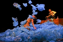 Fantaisie poétique pour petits et tout-petits avec 4 cartons, 2 clowns, 1 pomme, 1 bandonéon et 2000 sacs plastiques...