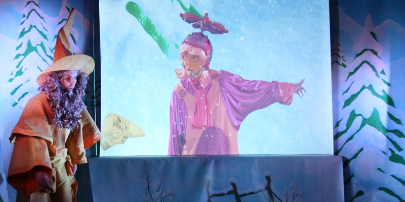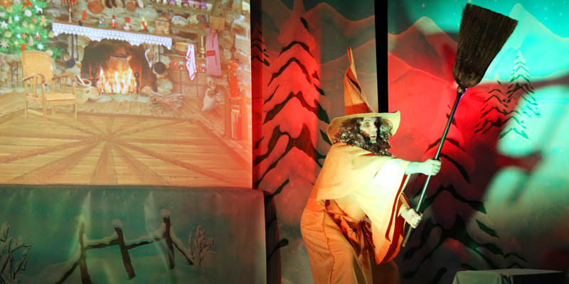 Avec l'aide des enfants présents dans la salle, Saperlipopette, un magicien super chouette, mène l'enquête. Les empreintes laissées par le voleur le conduisent dans une forêt de sapins enneigés. Au détour d'un sentier, dans un épais fourré, s'ouvre un passage secret.