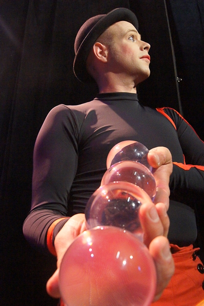 Un spectacle solo de jongleries, burlesque et interactif,