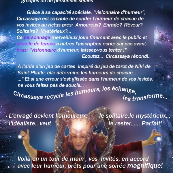 Voilà Circassaya qui tisse autours de vous une ambiance féerique et fantastique et en moins d'une seconde c'est Vous qui tenez dans vos mains une carte…celle de votre humeur du moment !