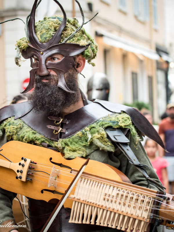 Déambulation musicale interactive avec marionnette & échasses – Spectacle de rue celtique et féérique