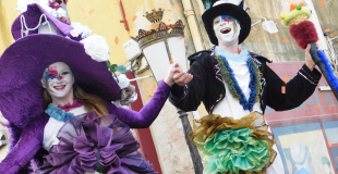 Ces magnifiques échassiers nés de la rencontre entre une fleur et un papillon vous éblouirons avec leurs costumes en froufrous colorés et leurs majestueux chapeaux recouverts de fleurs, de papillons et d'oiseaux.