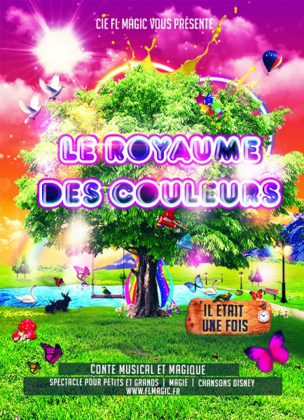 Un Conte Musical et Magique mêlant tours de magie et chansons Disney entraînant les spectateurs dans un monde imaginaire : Le Royaume Des Couleurs.