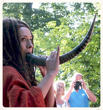 Elle accompagne ses incroyables légendes de chants et d'instruments d'un autre temps ( flûtes en corne et en roseau et étranges percussions )