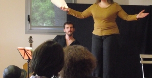 Deux artistes (une comédienne et un(e) musicien(ne) vous proposent une promenade littéraire et musicale, en déambulation (dans une cave, un salon du livre, une bibliothèque...) ou en "fixe".