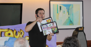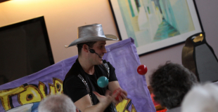 Evidemment, il ne s'agit pas de jongler pendant 1h15 devant les résidents. Sur un fond de voyage, les numéros s’enchaînent : du visuel, de l'animation, de la participation des résidents et du personnel et surtout un lien constant avec le public grâce au micro casque et au décor d'1m40 permettant de changer de costumes sans disparaître.
