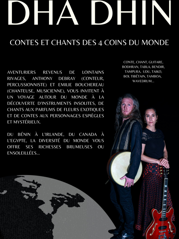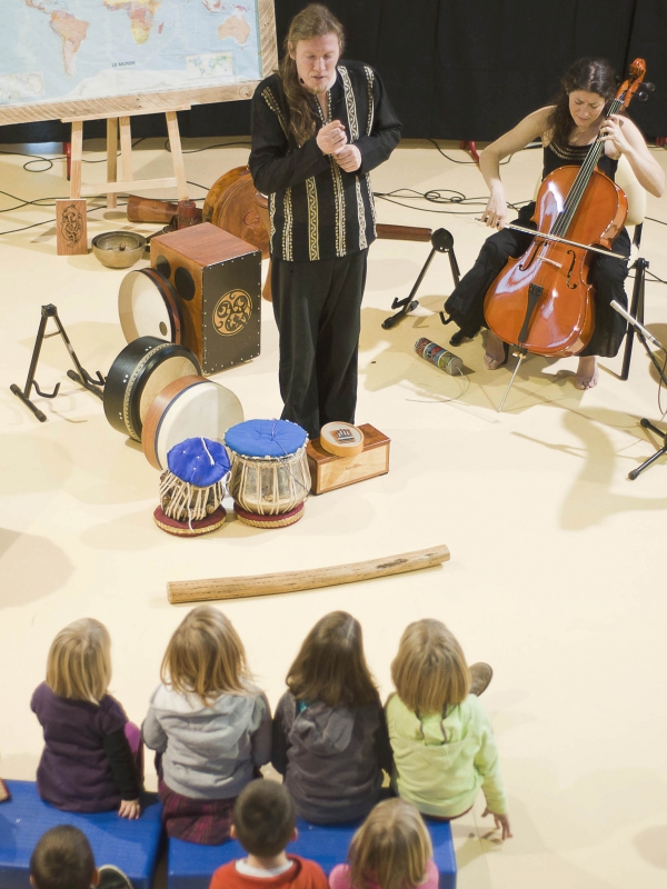 Sous les doigts du percussionniste, des instruments insolites nous guident du Bénin à l'Irlande et du canada à l’Égypte. A chaque étape du voyage, contes et mélodies nous offrent une vision de la diversité du monde.
